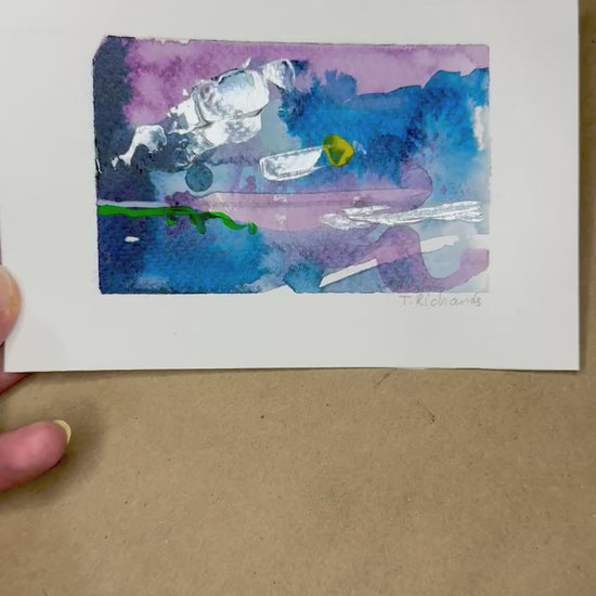 Blue Hour Abstract Painting Original Art Night Landscape, Acrylic on Paper 4x6”
