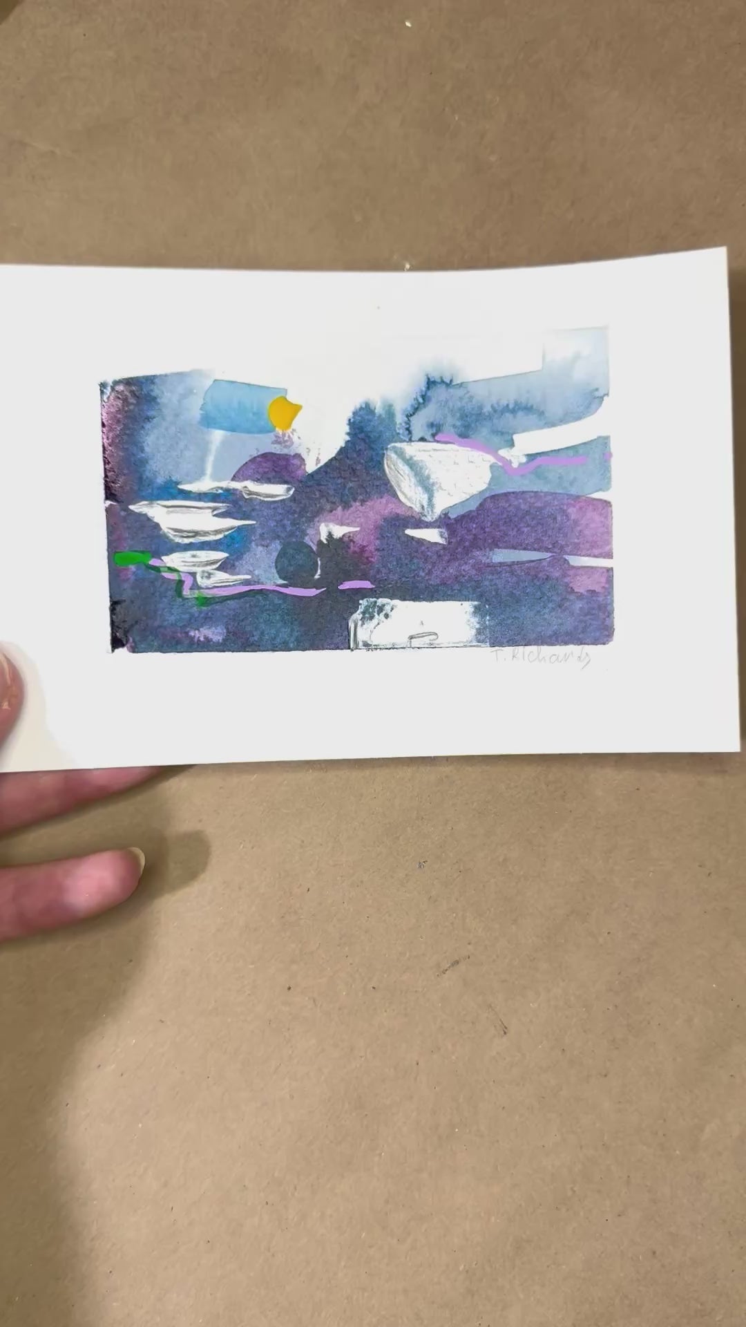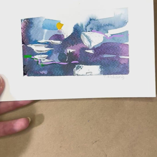 Blue Hour Abstract Painting Original Art Night Landscape, Acrylic on Paper 4x6”