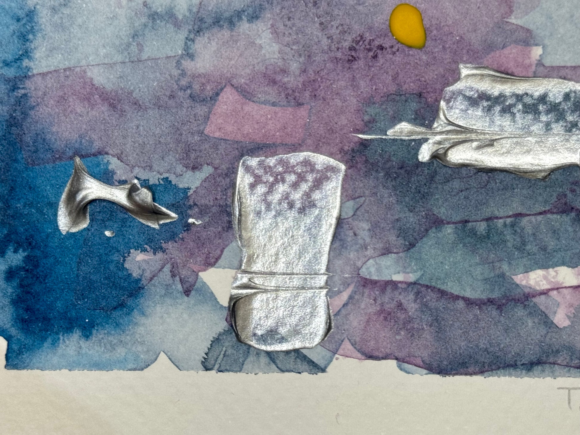 This abstract landscape painting is the part of the "Blue Hour Memory" series, inspired by the beauty of the magic hour after the sunset.