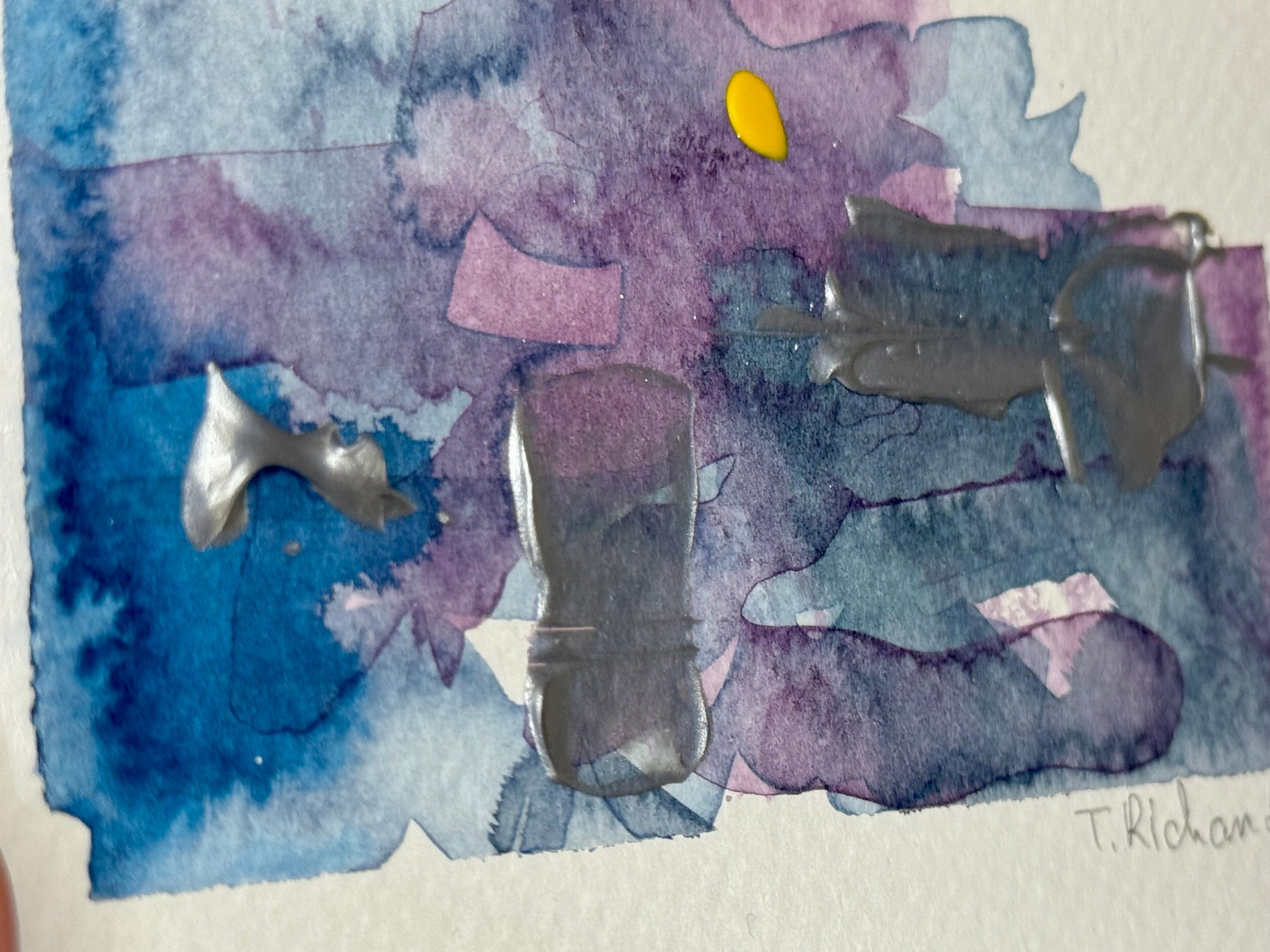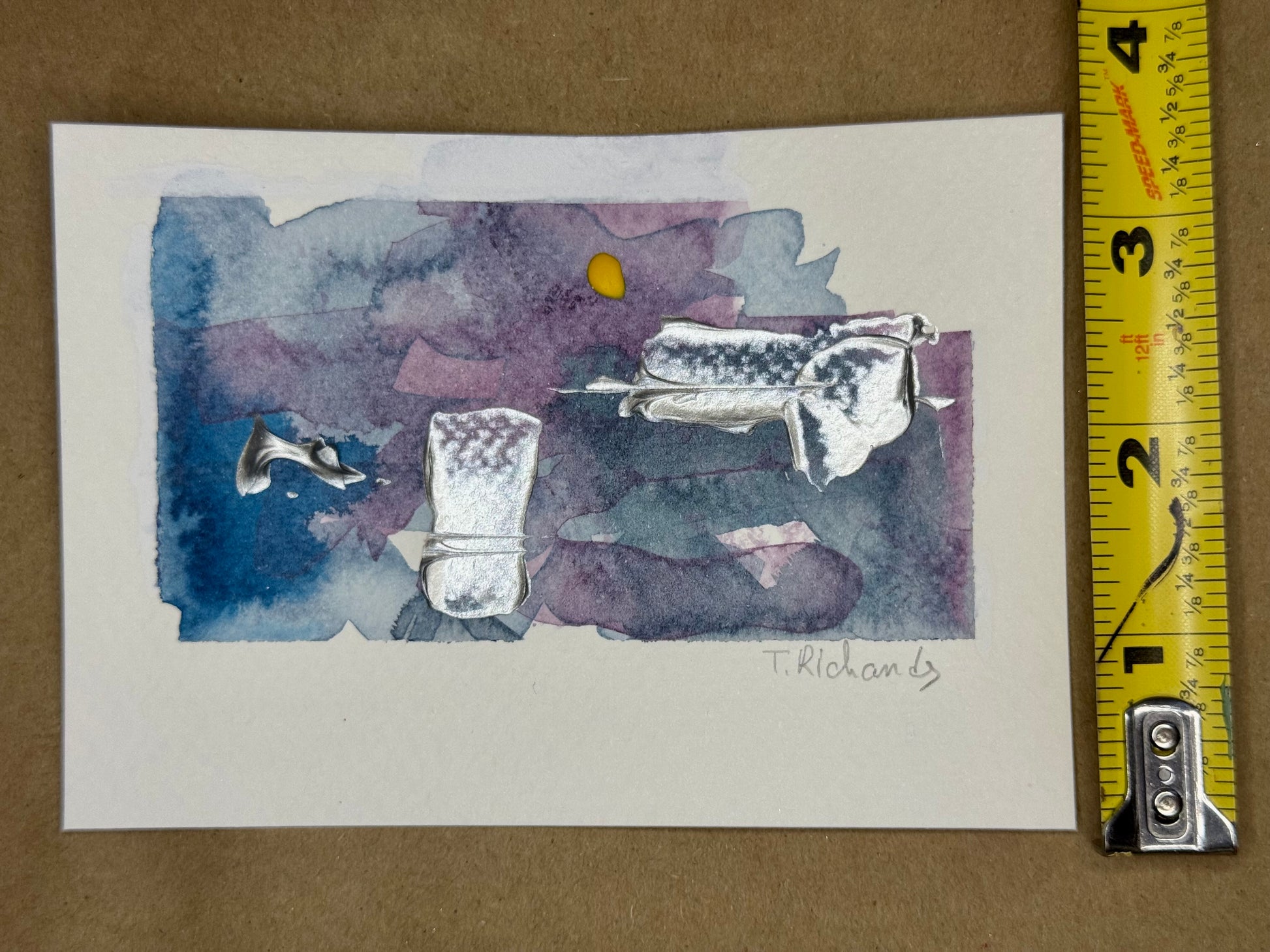 Blue Hour Abstract Painting Original Art Night Landscape, Acrylic on Paper 3.5x5”