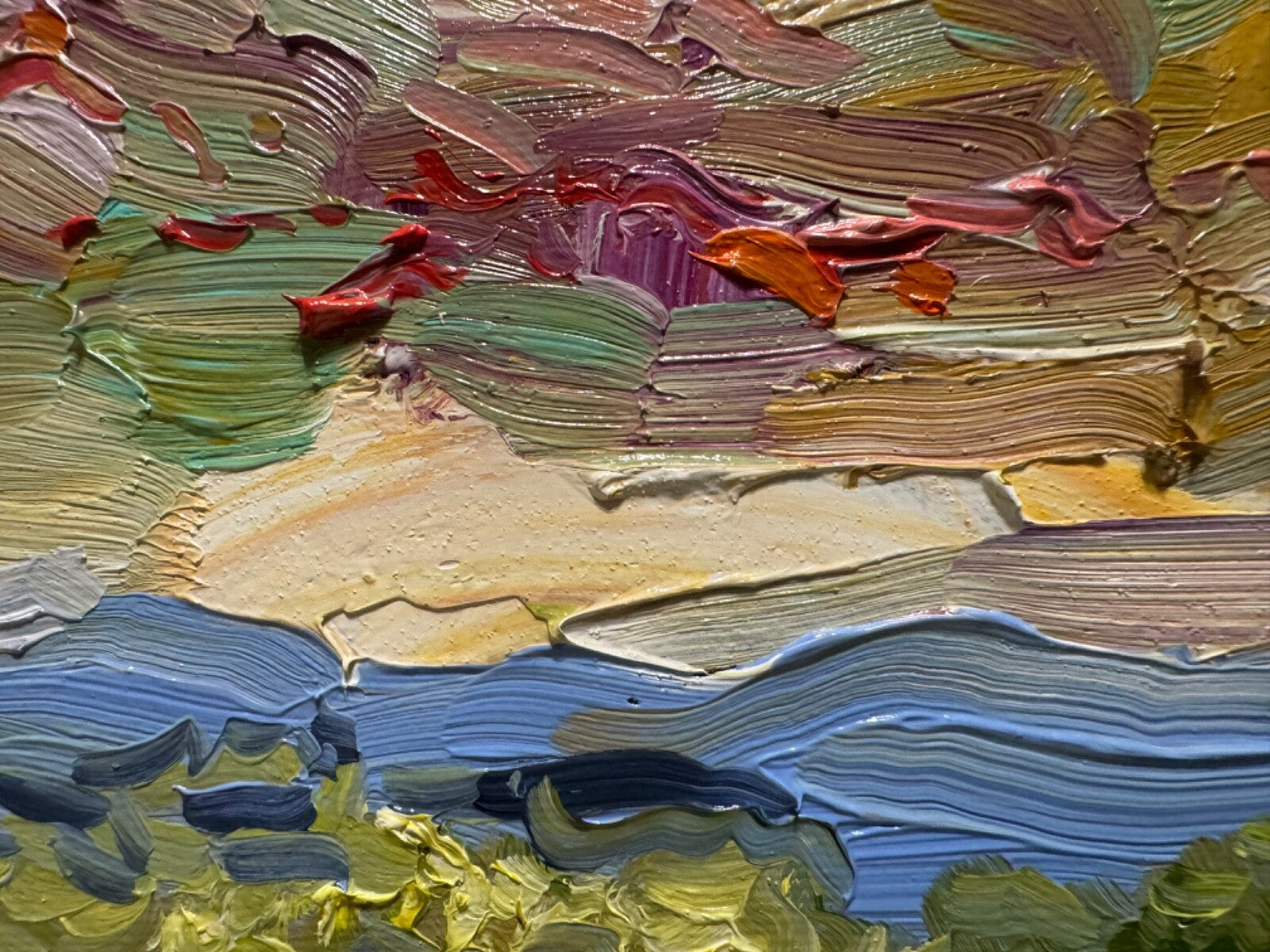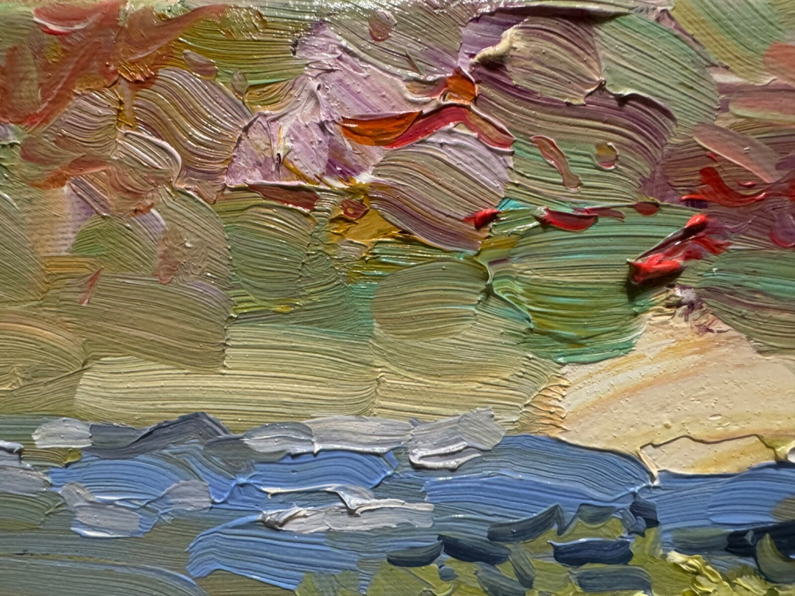Oil on canvas. Ready to hang with D-rings and wire. Sides are painted.