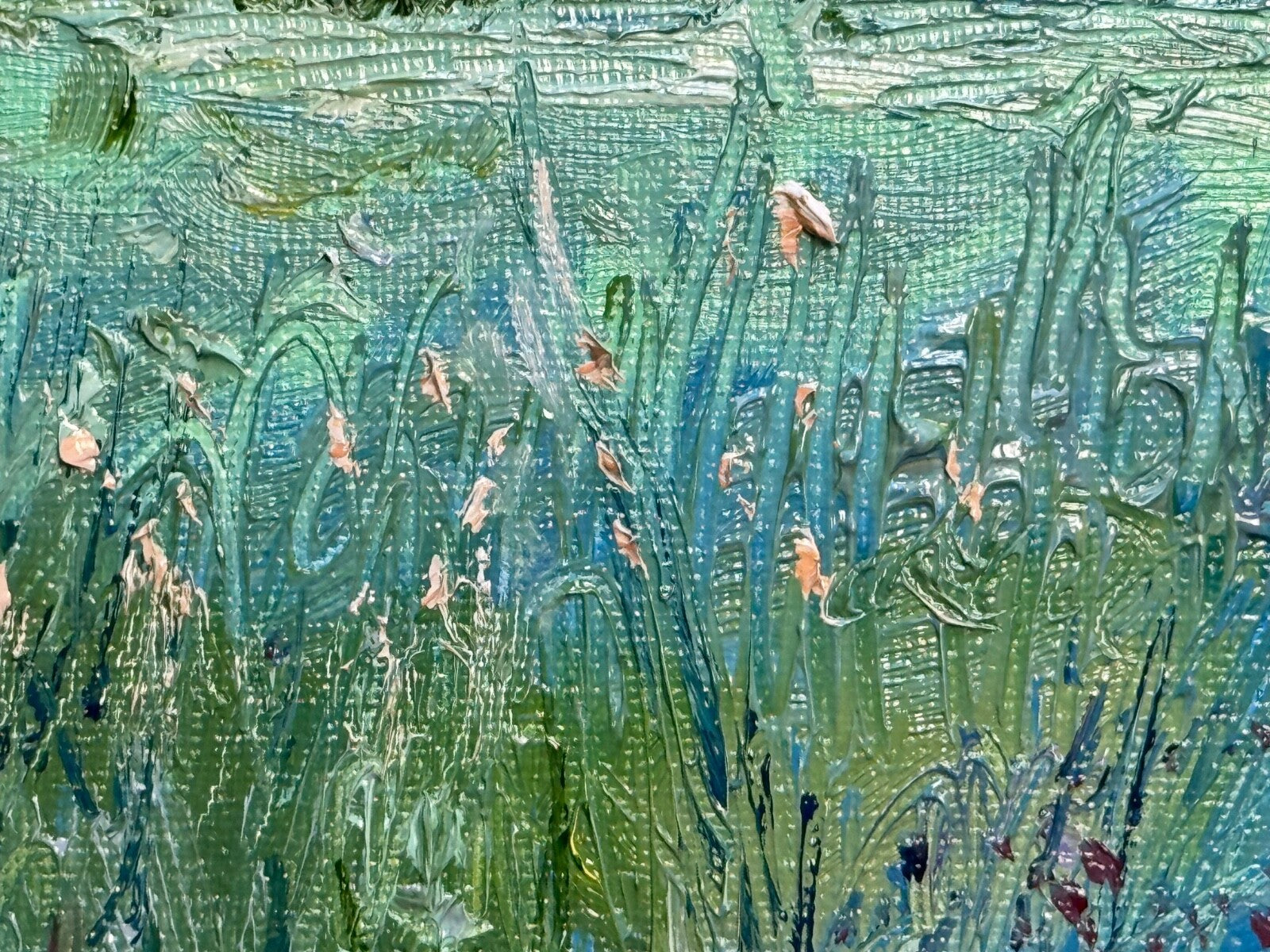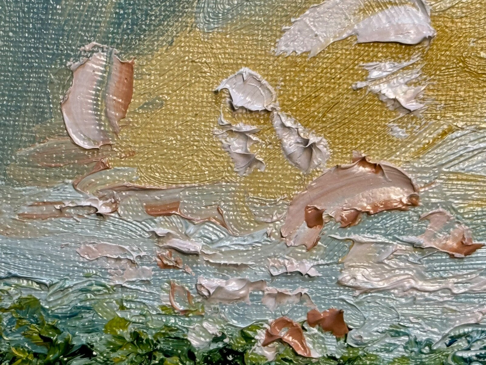 Oil on canvas. Ready to hang with D-rings and wire. Sides are painted.