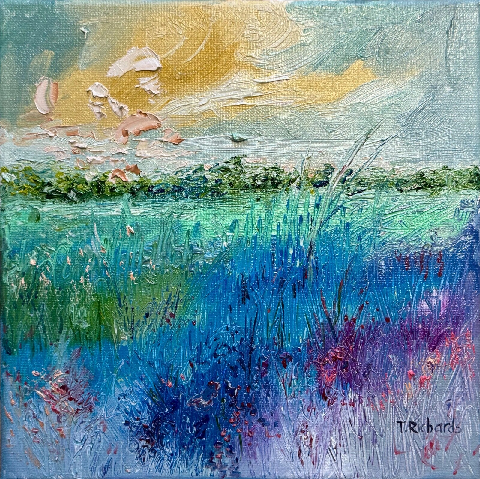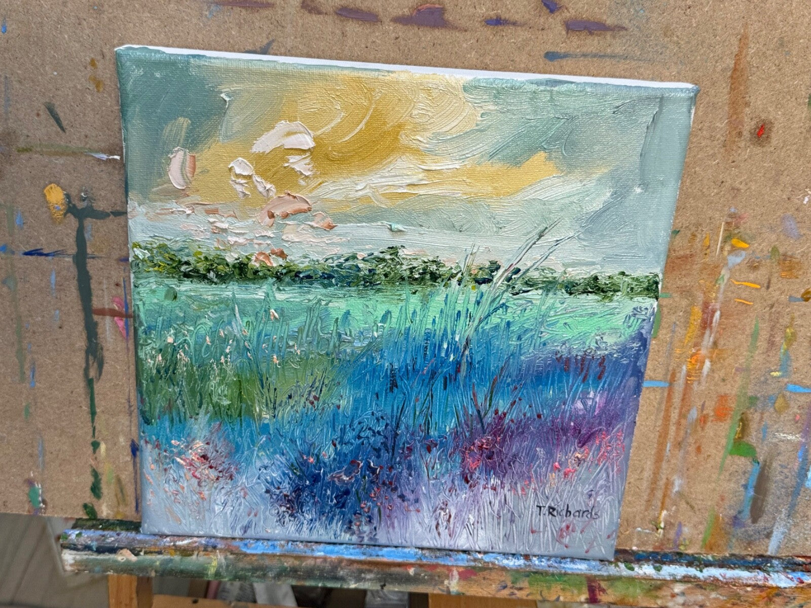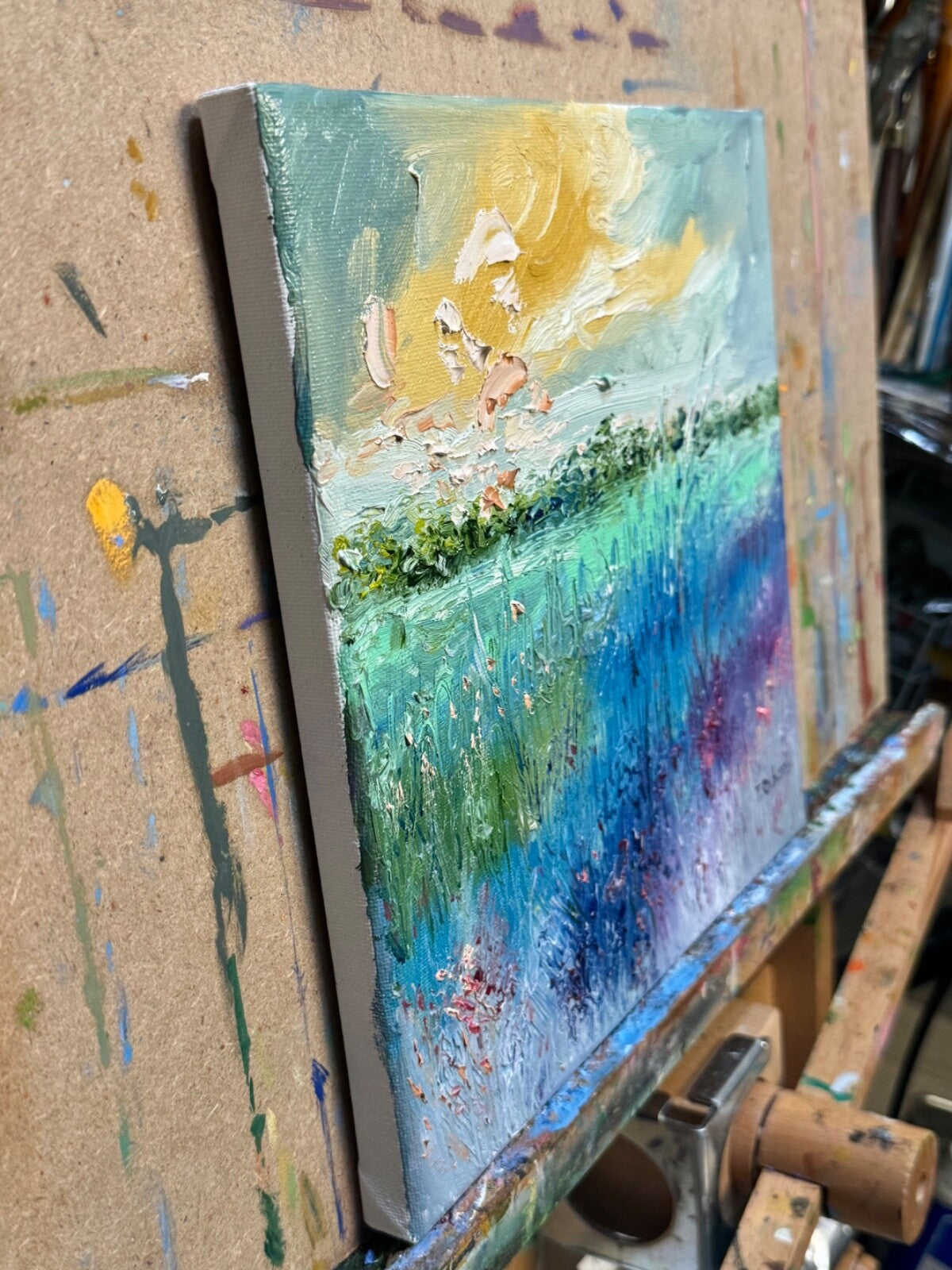 Field painting ORIGINAL art Landscape sunrise Floral flower wildflower 10x10”