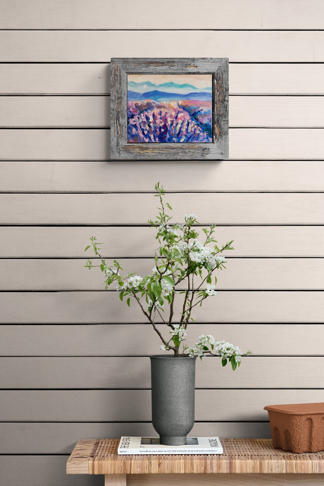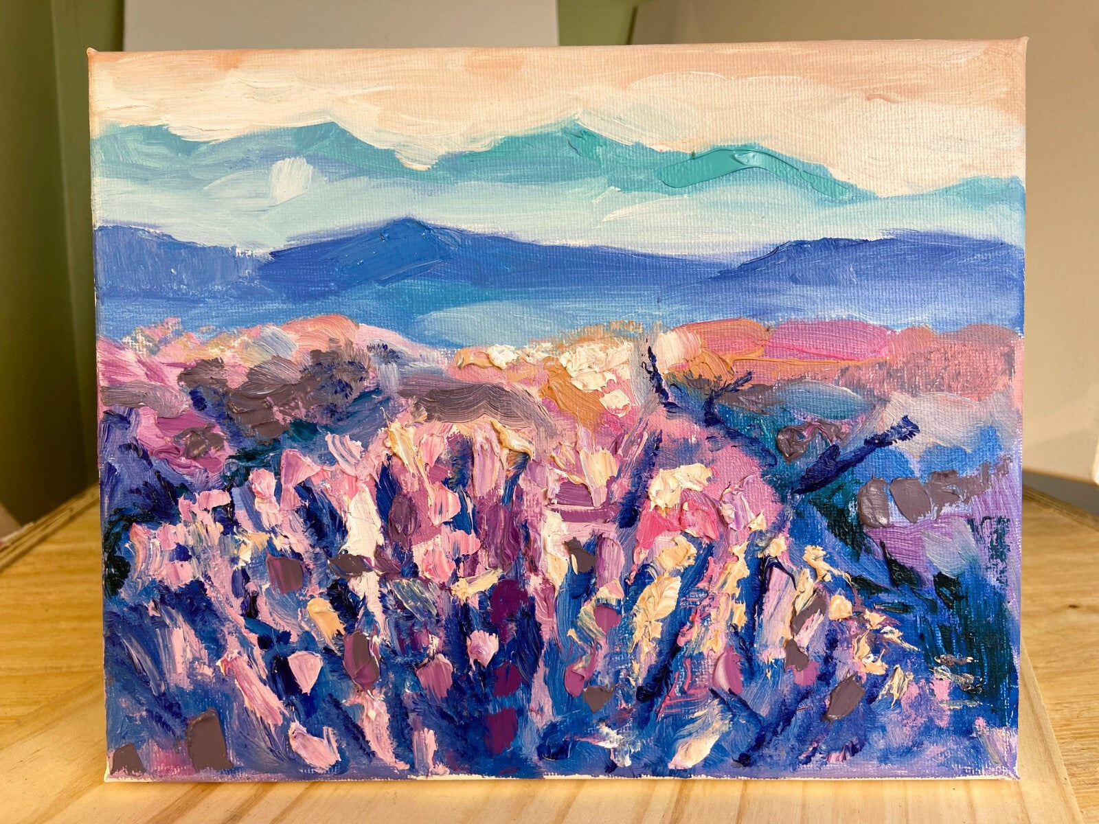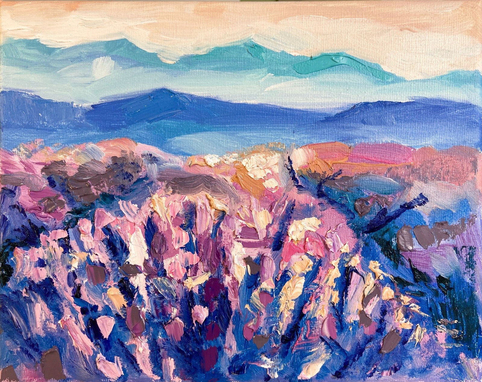 Oil painting ORIGINAL art Lavender field artwork Landscape flowers mountain 8x10