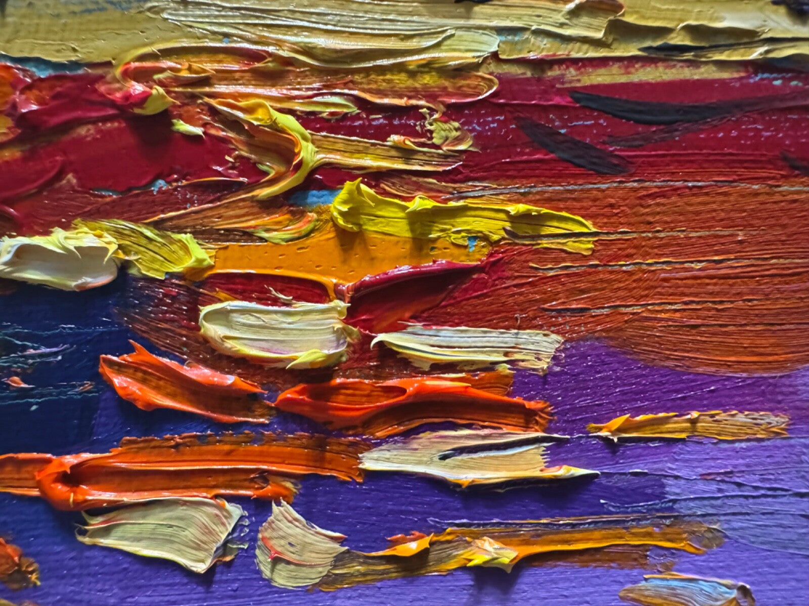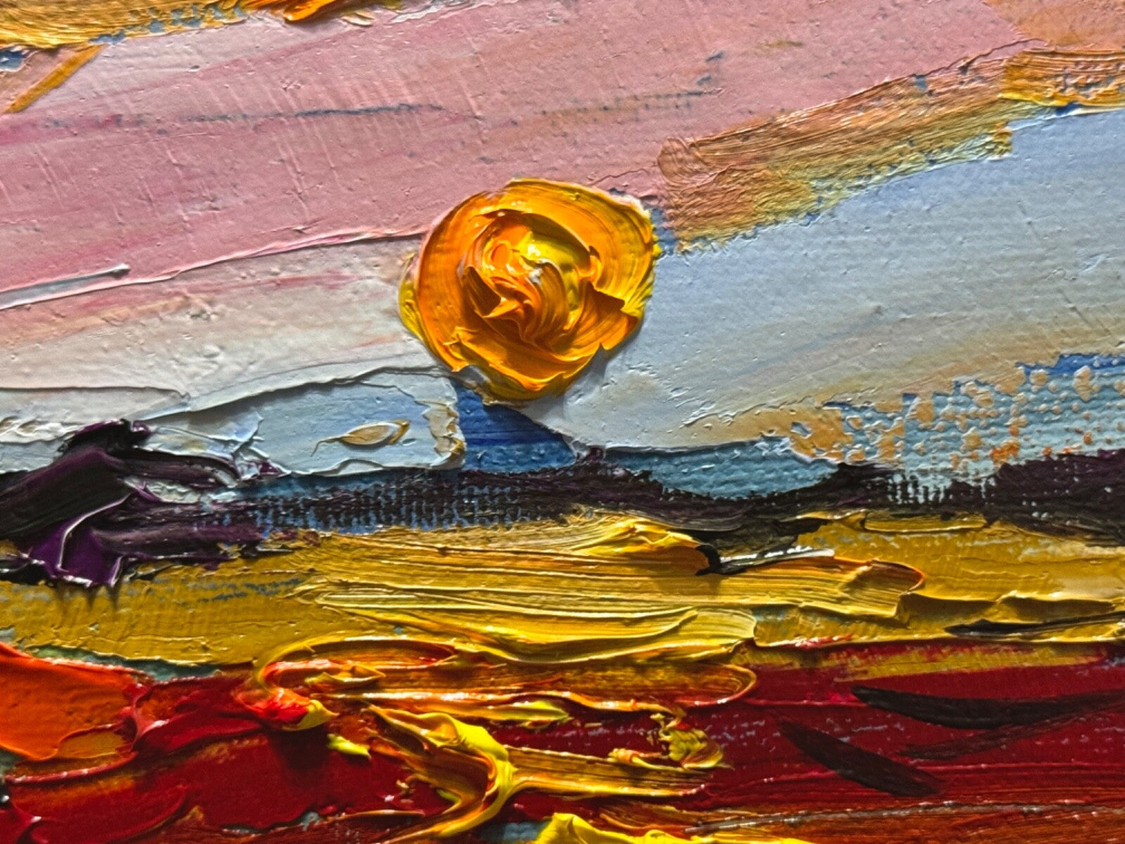 Oil painting ORIGINAL art Ocean artwork small sunset Seascape landscape 8x8"