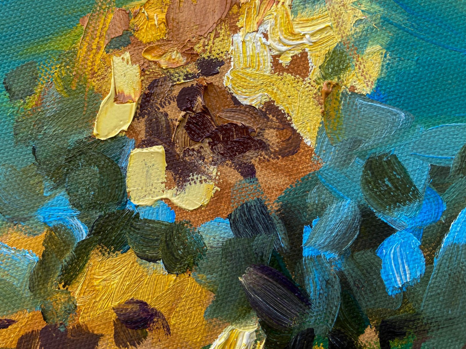 Oil painting ORIGINAL art Sunflower field landscape wall art flower floral 16x16