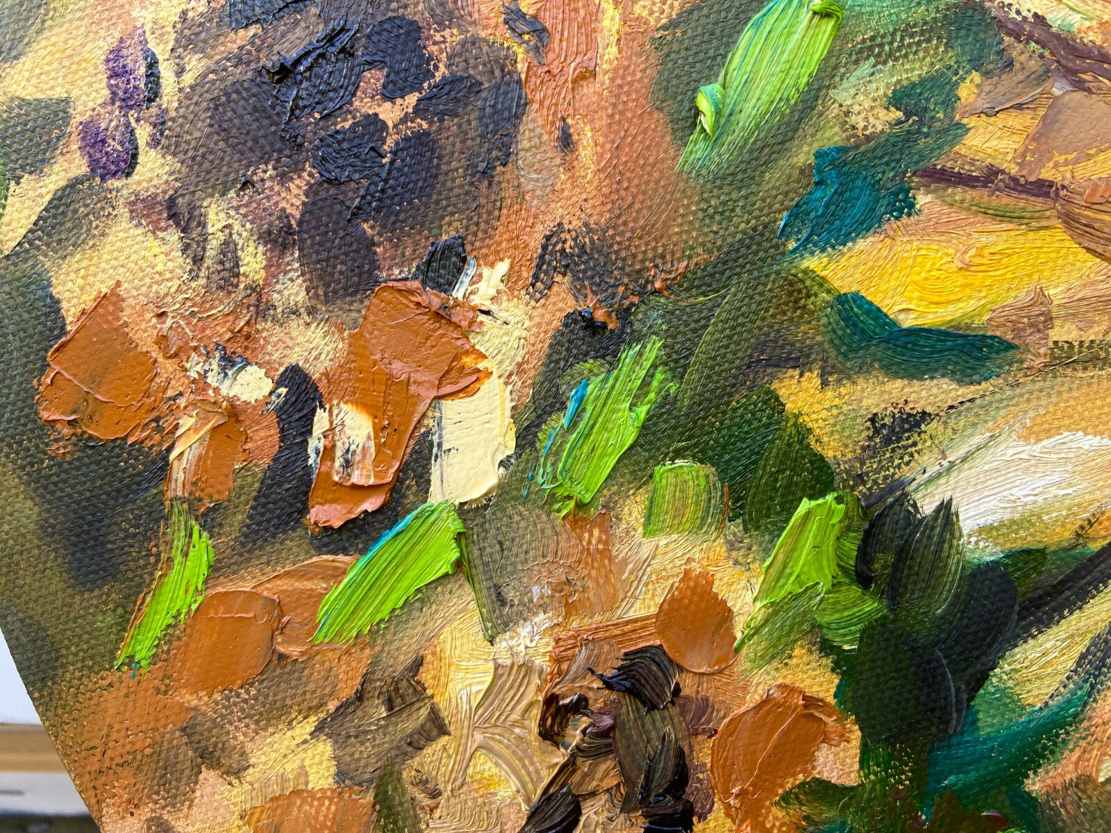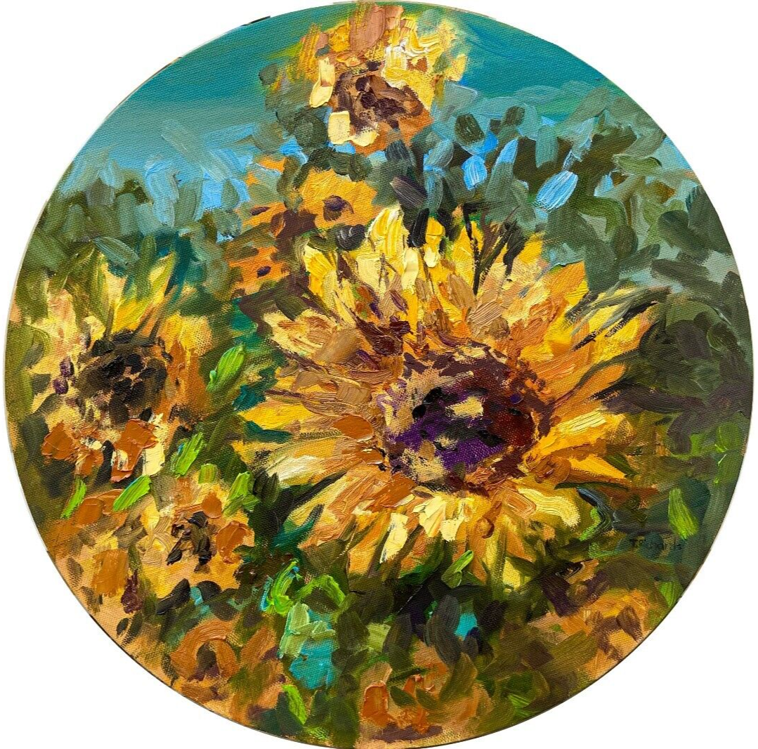 Sunflowers oil painting, 16x16" original art, handmade painting, oil on canvas. Hand-painted floral artwork, flower oil painting!