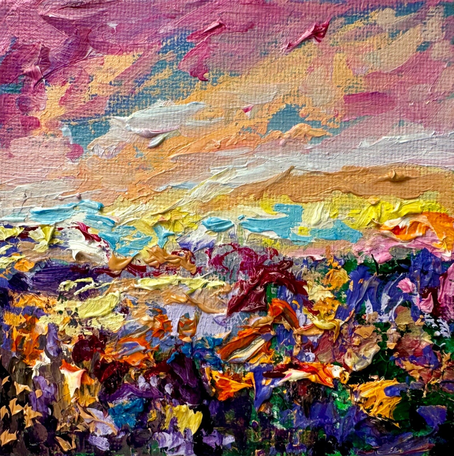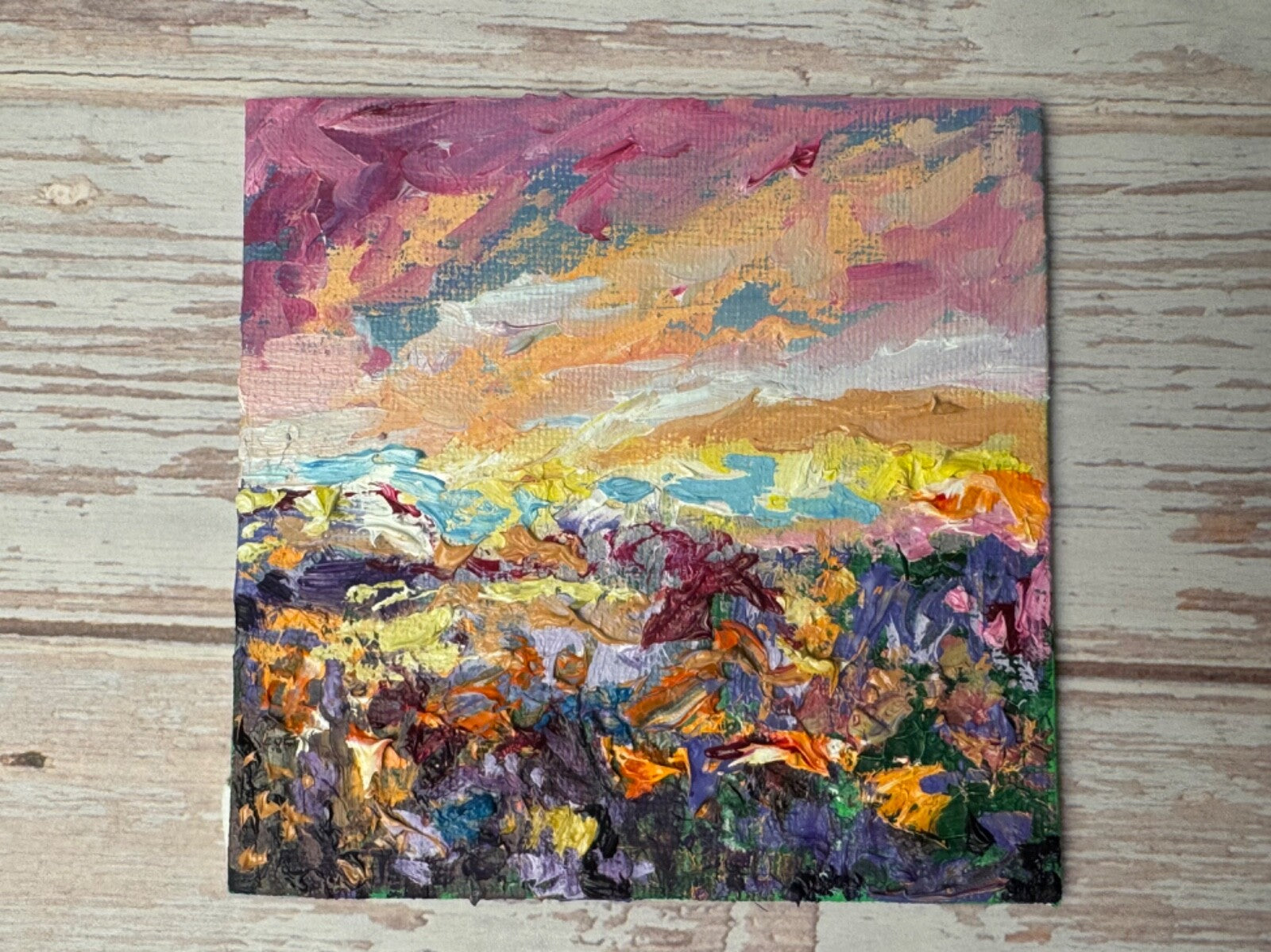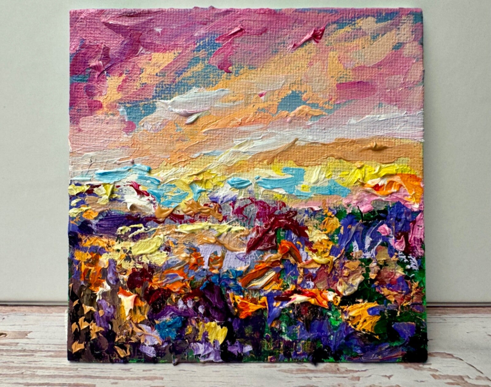 Oil Painting Wildflower landscape Original art Flower floral art Mini easel 4x4”