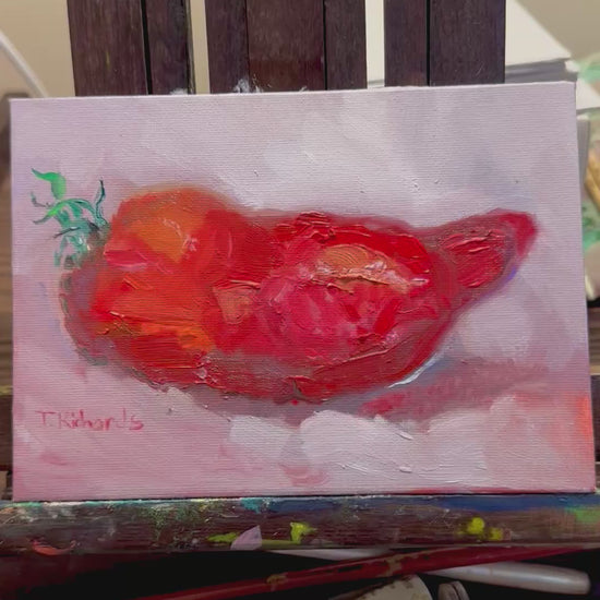 Opalka Paste Tomato Oil Painting 5x7, Original Art, Still Life Artwork, Small Food Wall Art, Kitchen Garden Heirloom Tomatoes