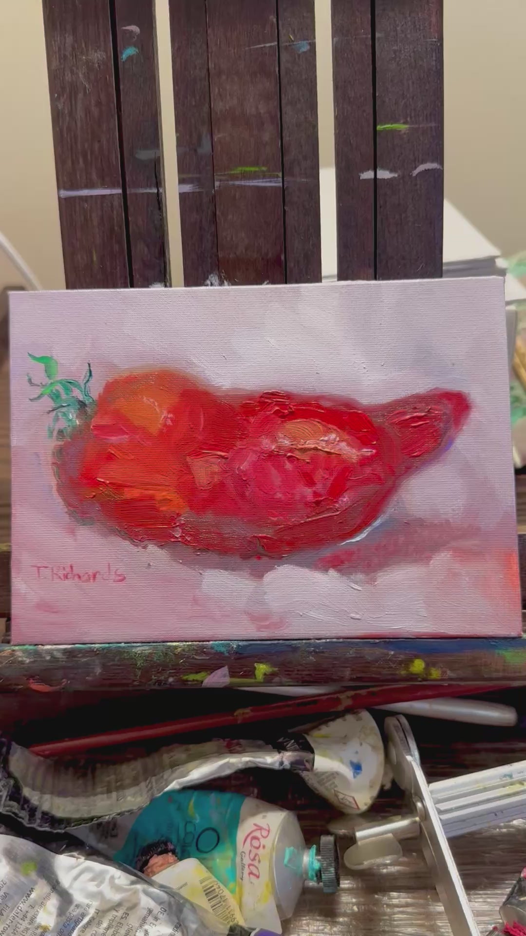 It was a pleasure to paint the tomato from my own garden. Nature’s colors and shapes never cease to inspire me!