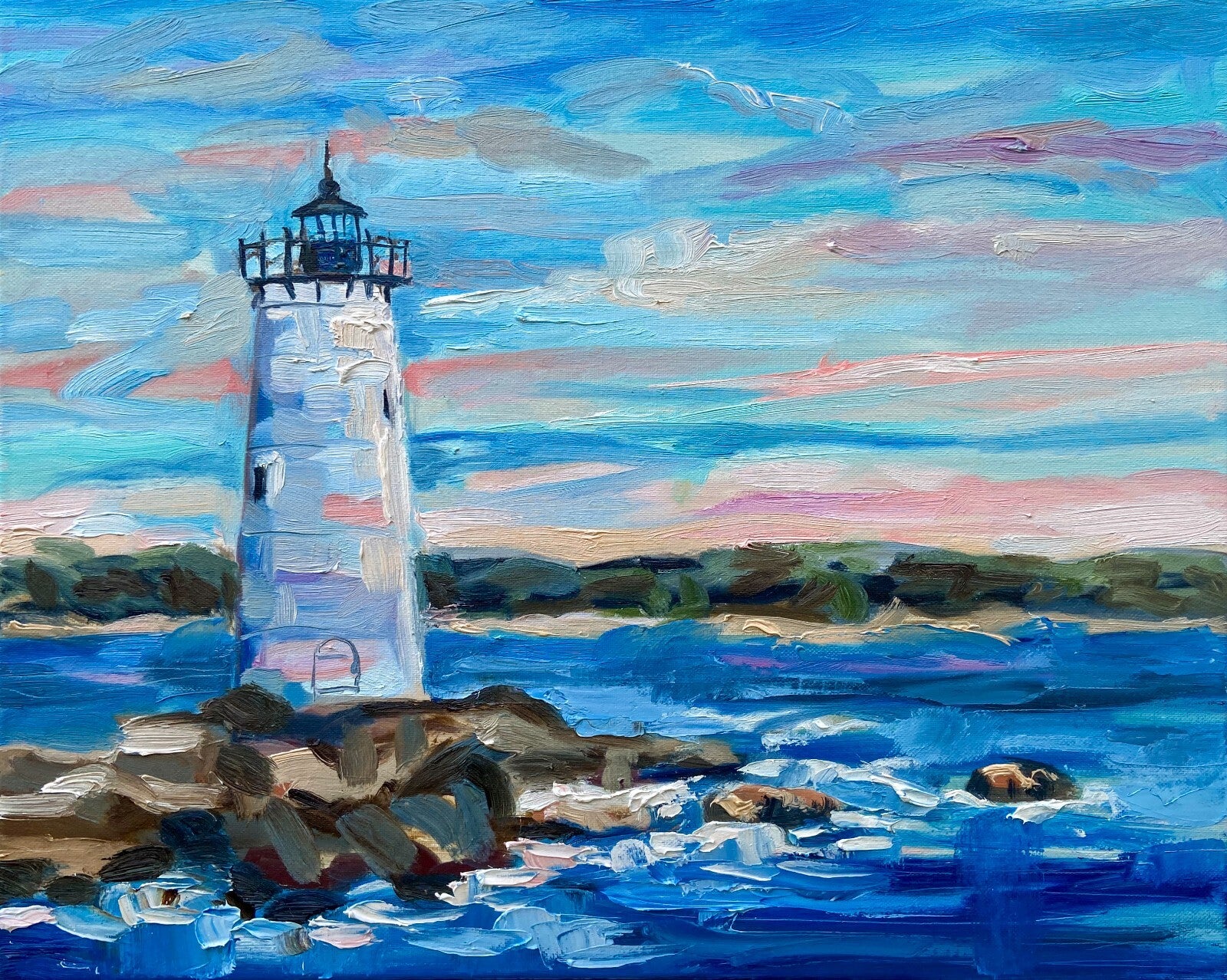 This oil painting by Taisiia Richards captures the beauty of the Portsmouth Harbor Lighthouse,