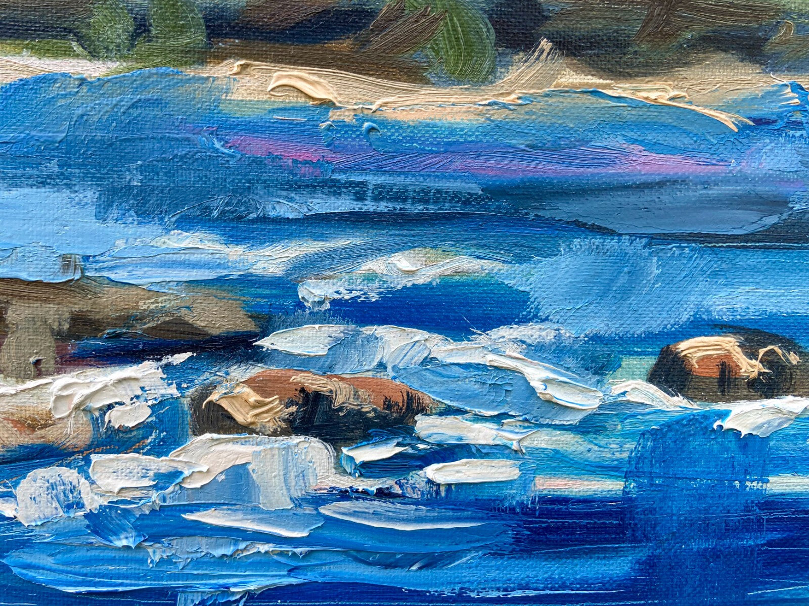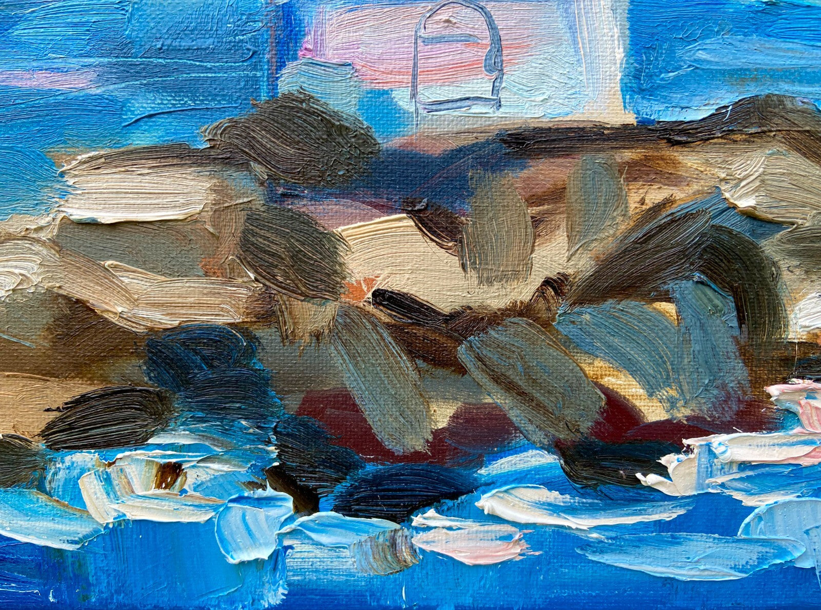 The painting is unframed and handmade, with the production technique being oil painting. Its theme is art and the subject is a seascape. The painting was produced in 2022 and is an original piece. The item is sold as a single piece and is from New Hampshire, USA.