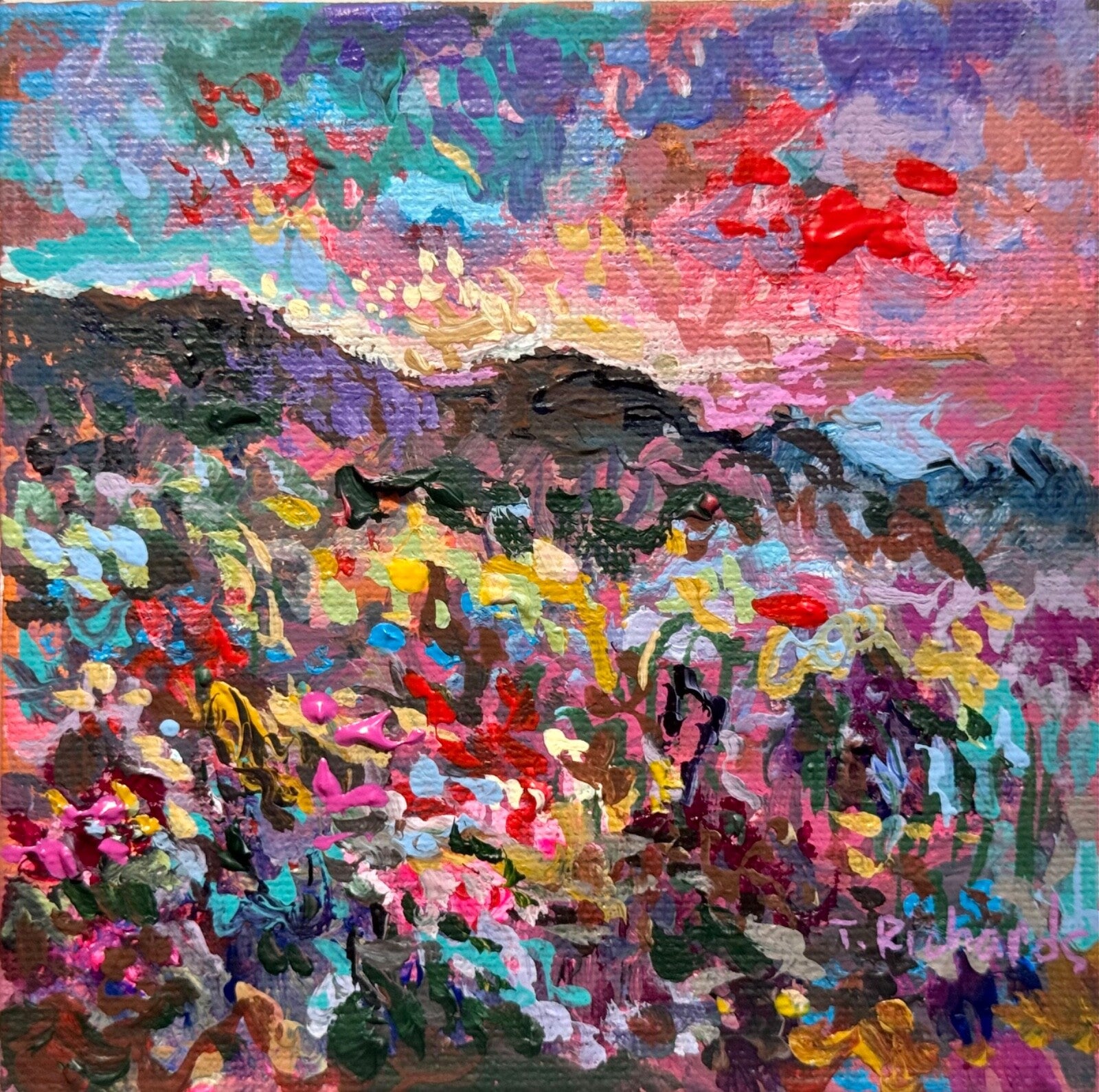 Wildflower field Original art Landscape flower floral Acrylic Painting 4x4”