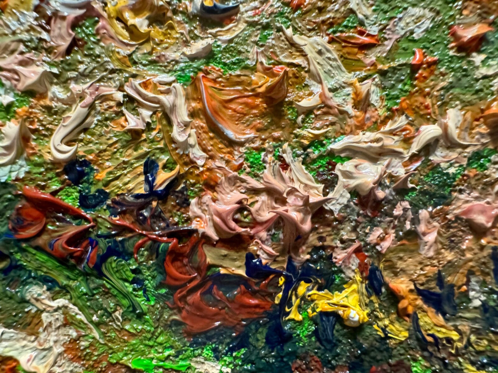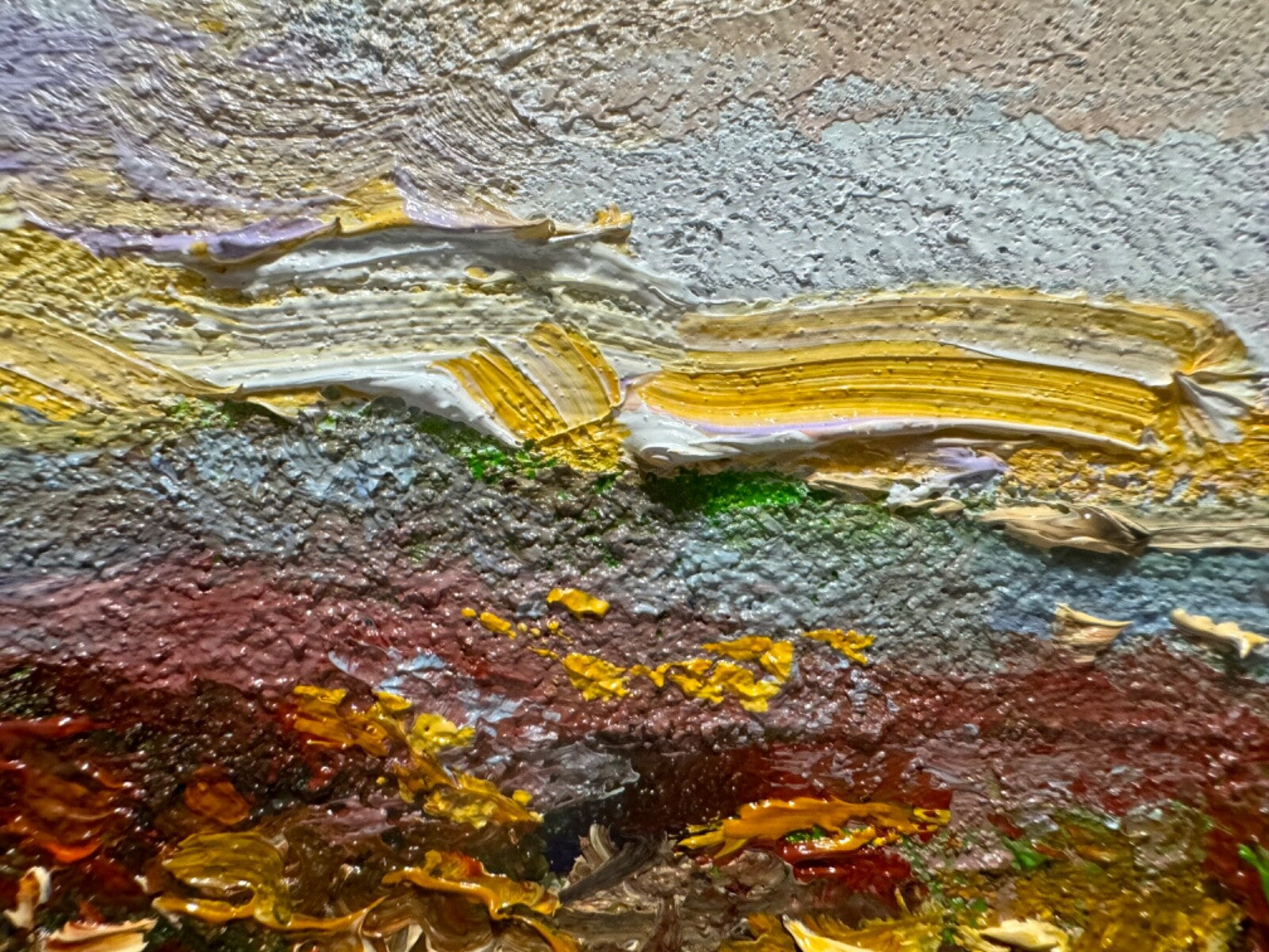 Oil on canvas. Ready to hang with D-rings and wire. Sides are painted.